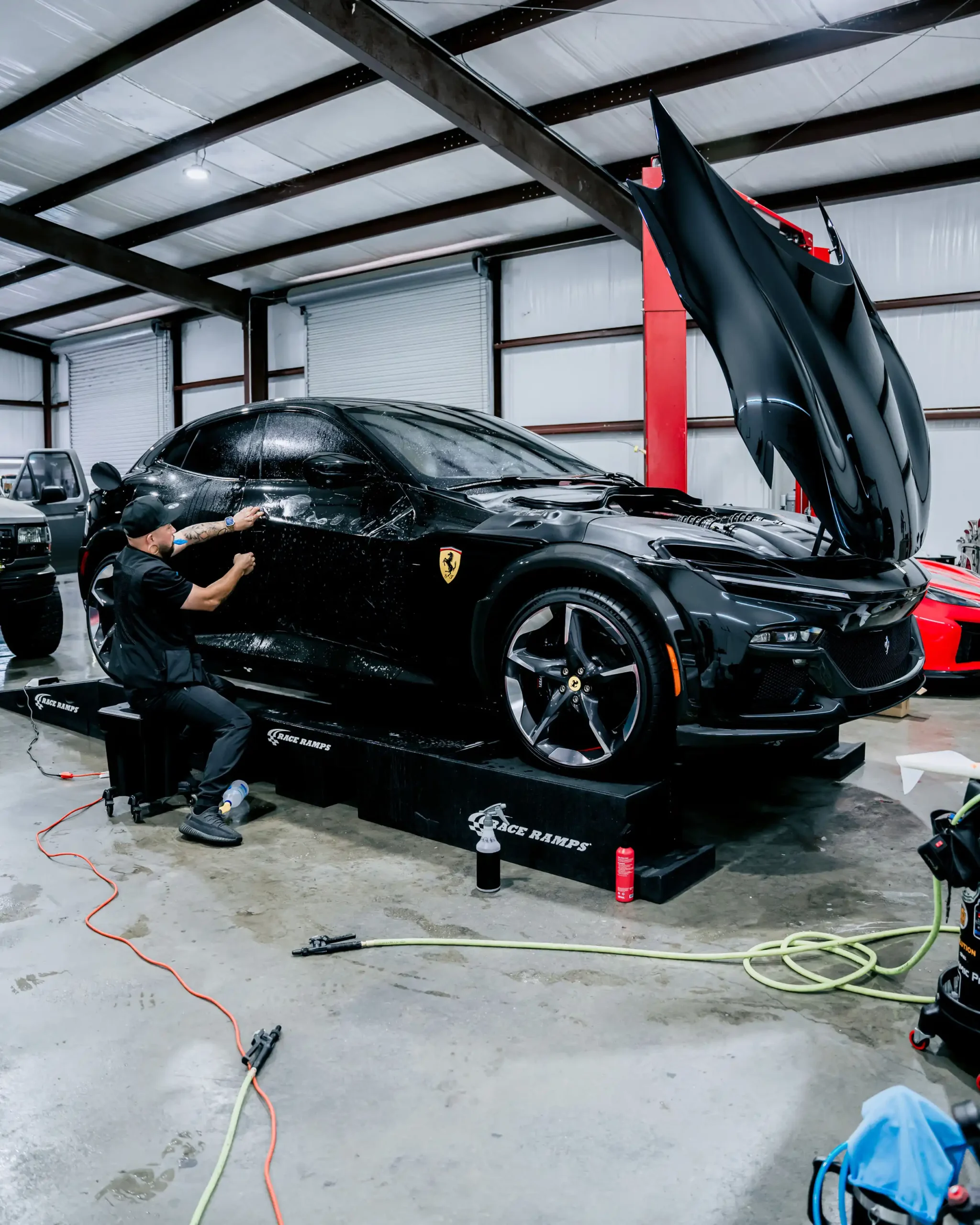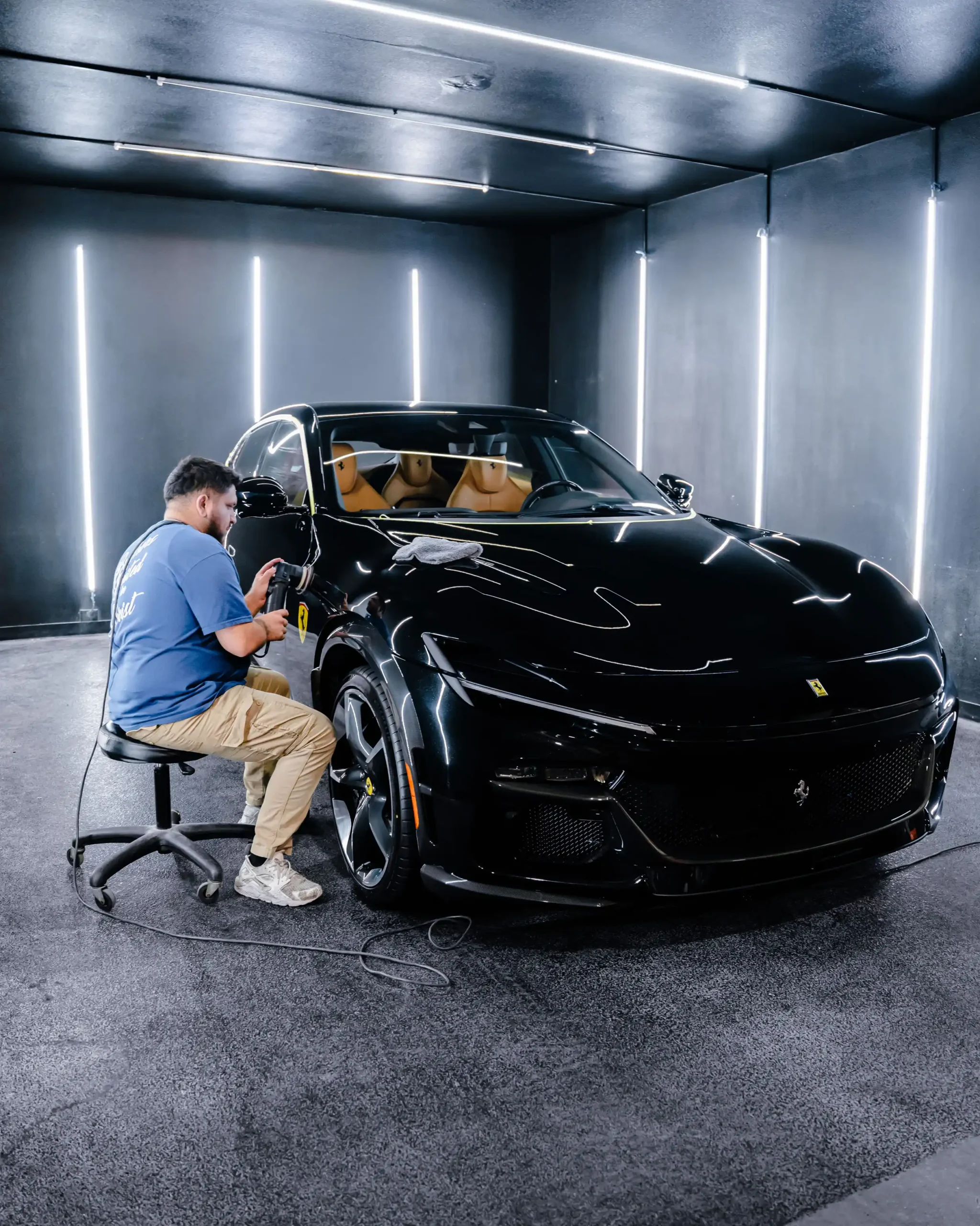 Nero Galaxy Ferrari Purosangue gets full XPEL protection