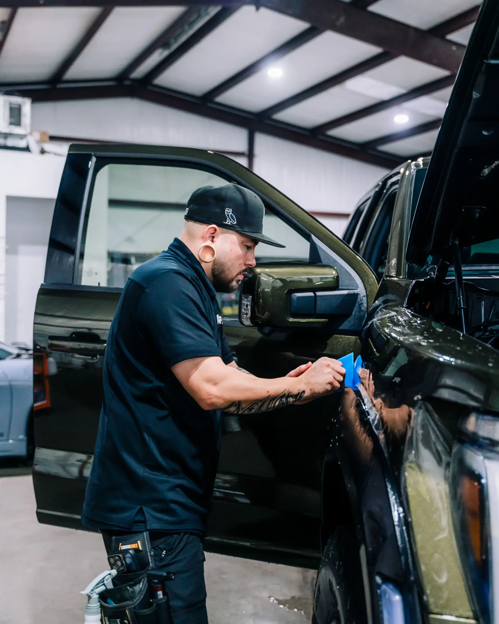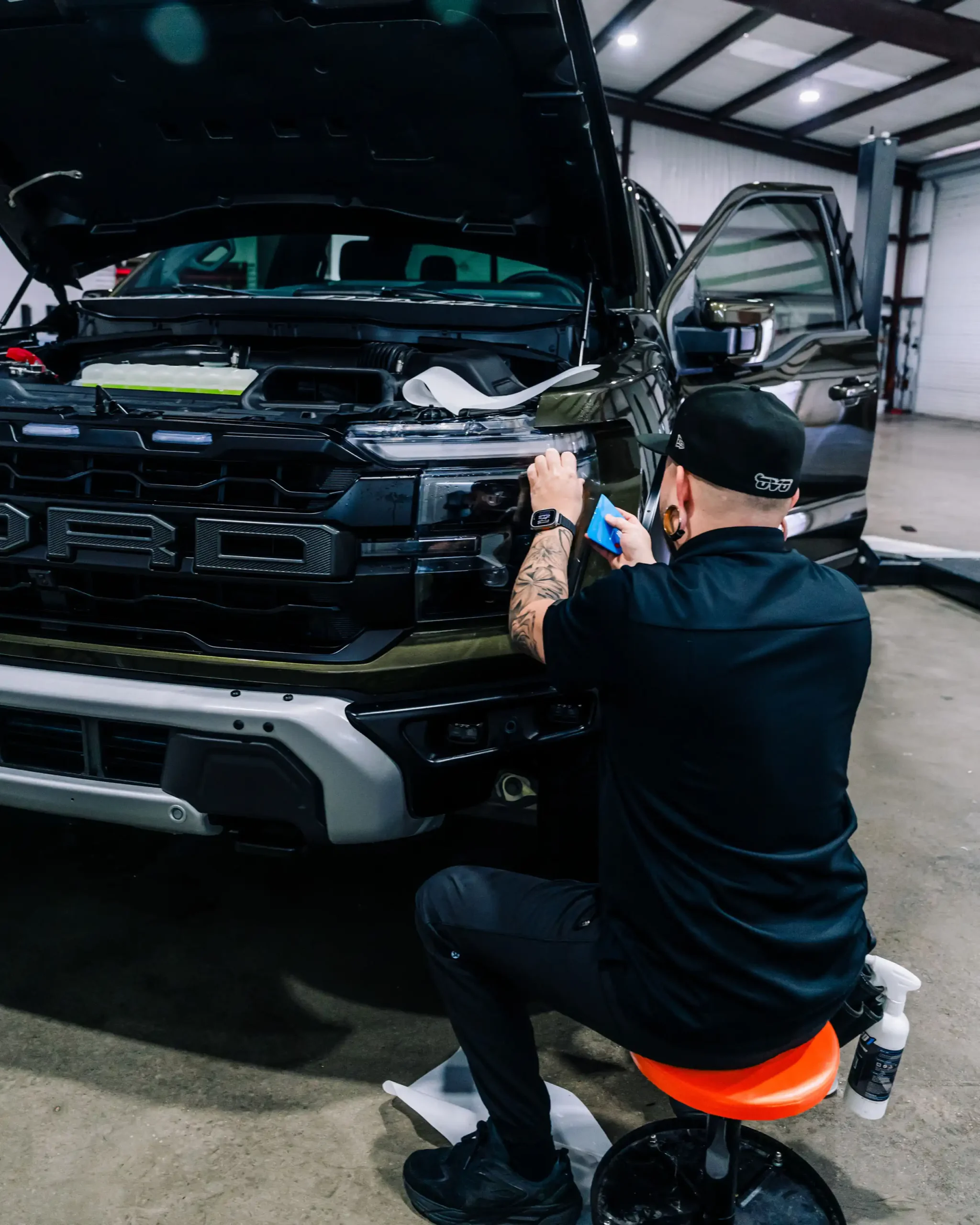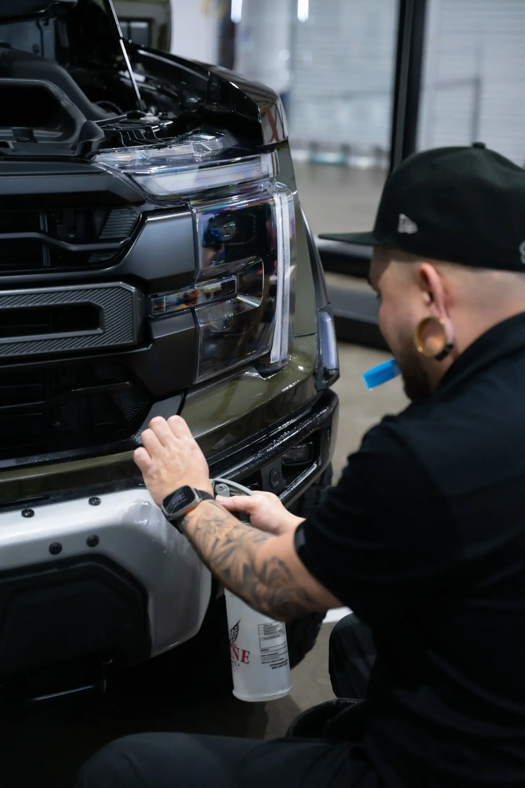 PPF Ceramic Coating – creating a hydrophobic that will keep the vehicle surface clean while enhancing shine/maintaining the same satin finish