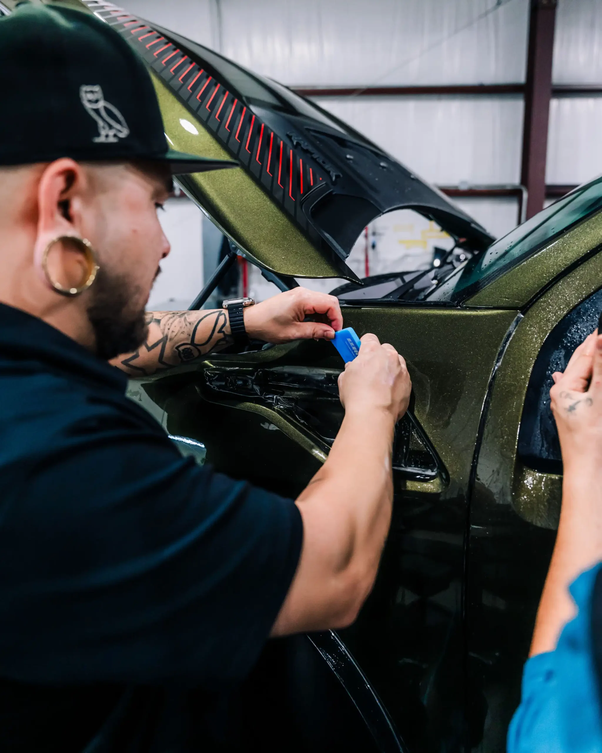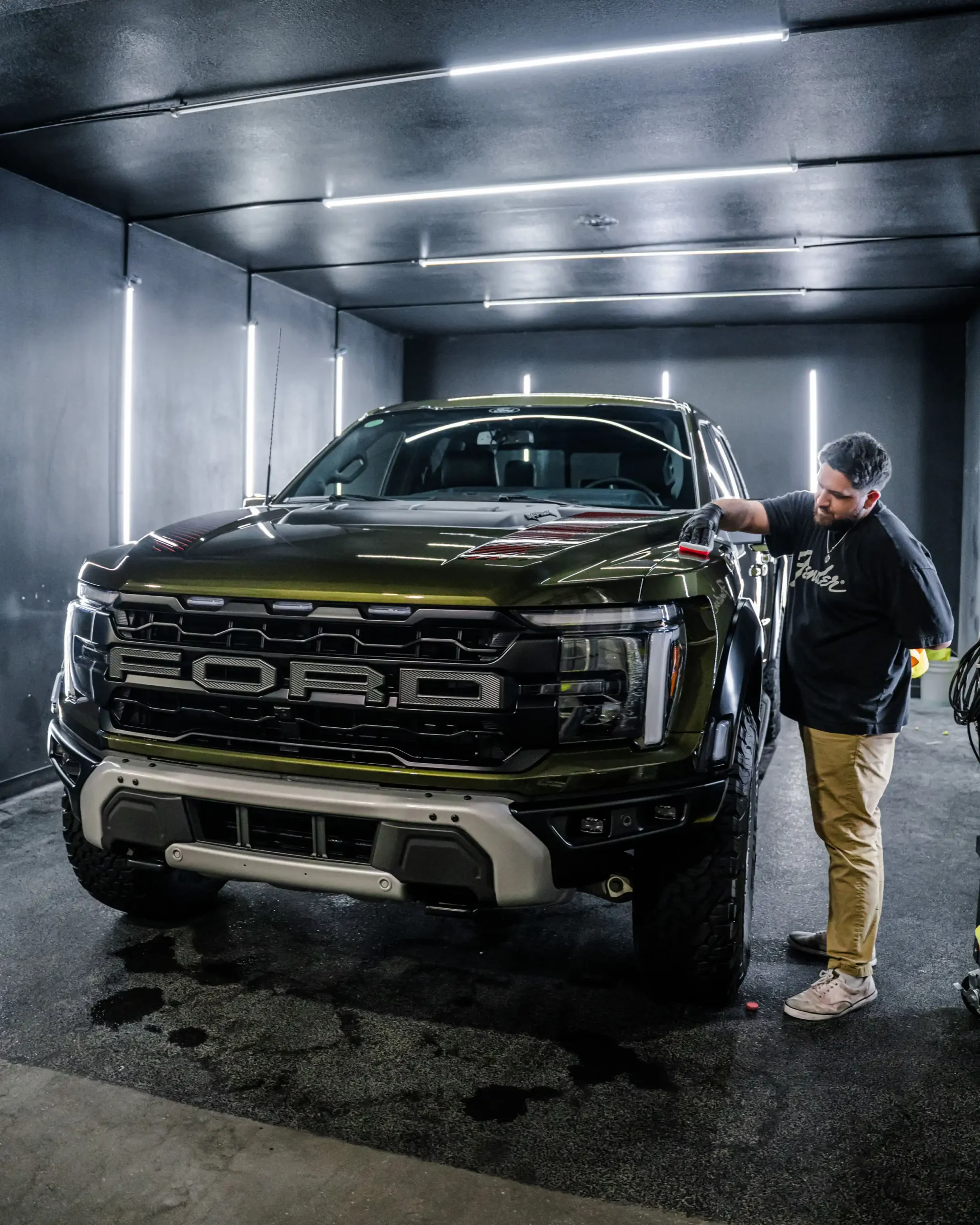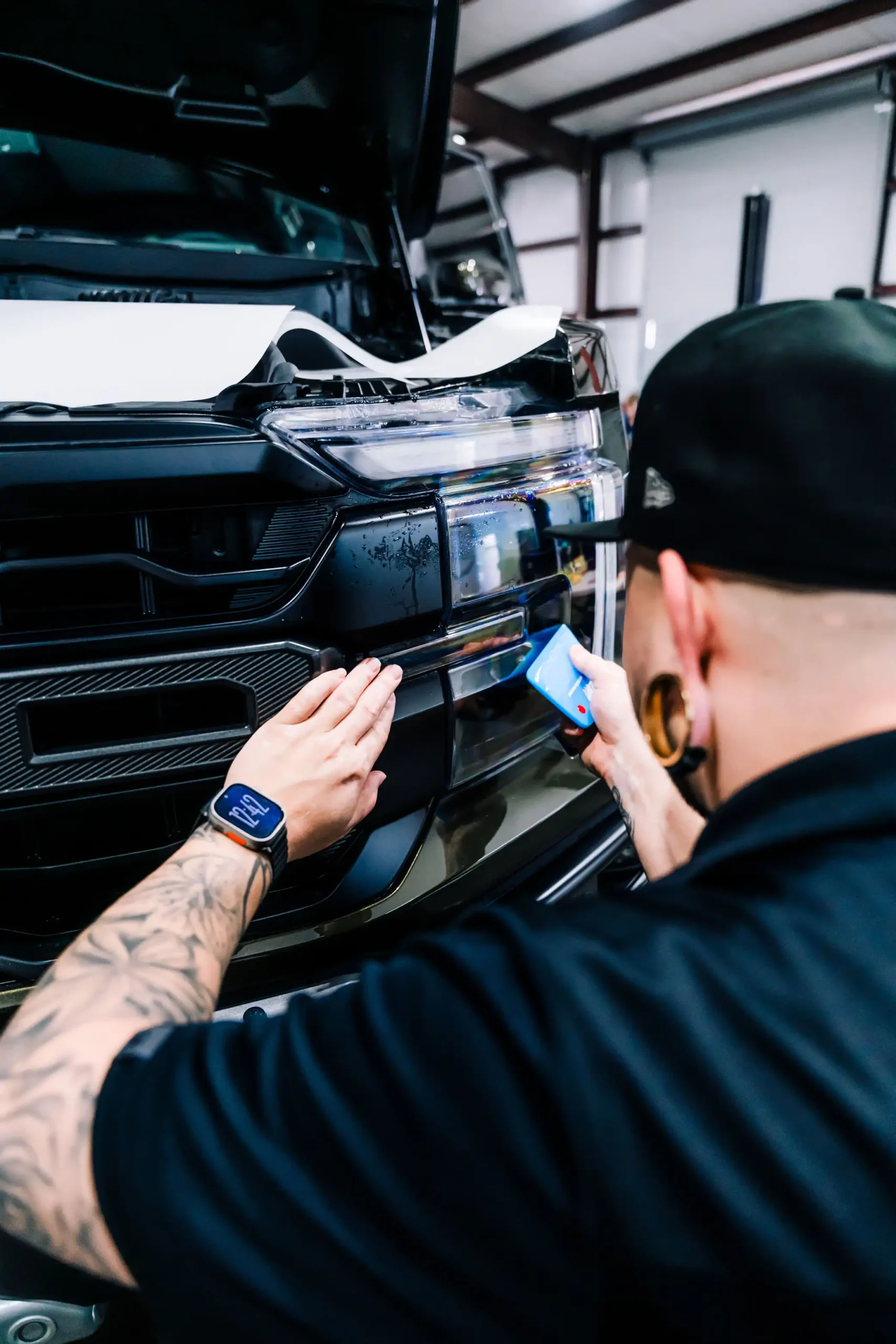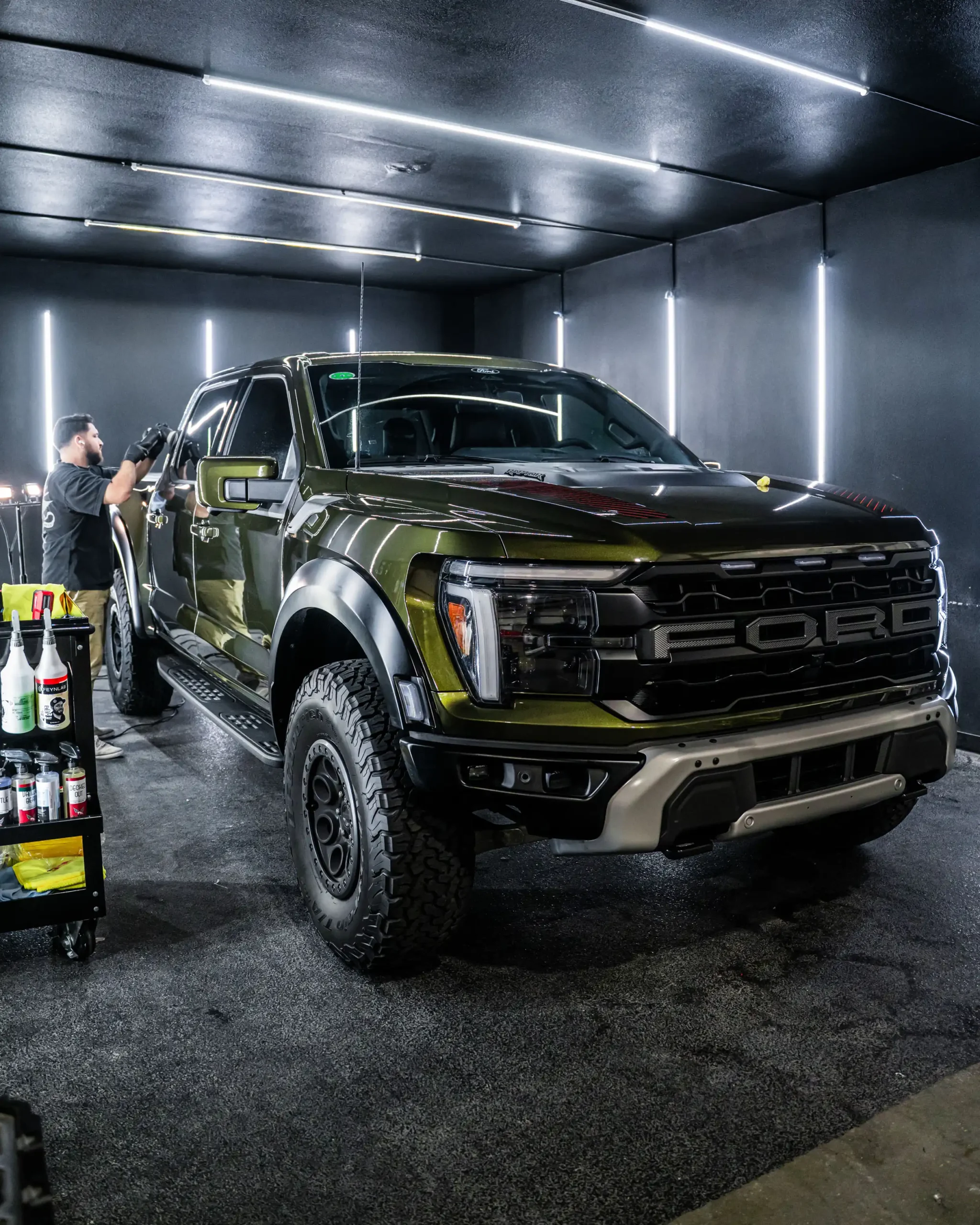 PPF Ceramic Coating – creating a hydrophobic that will keep the vehicle surface clean while enhancing shine/maintaining the same satin finish